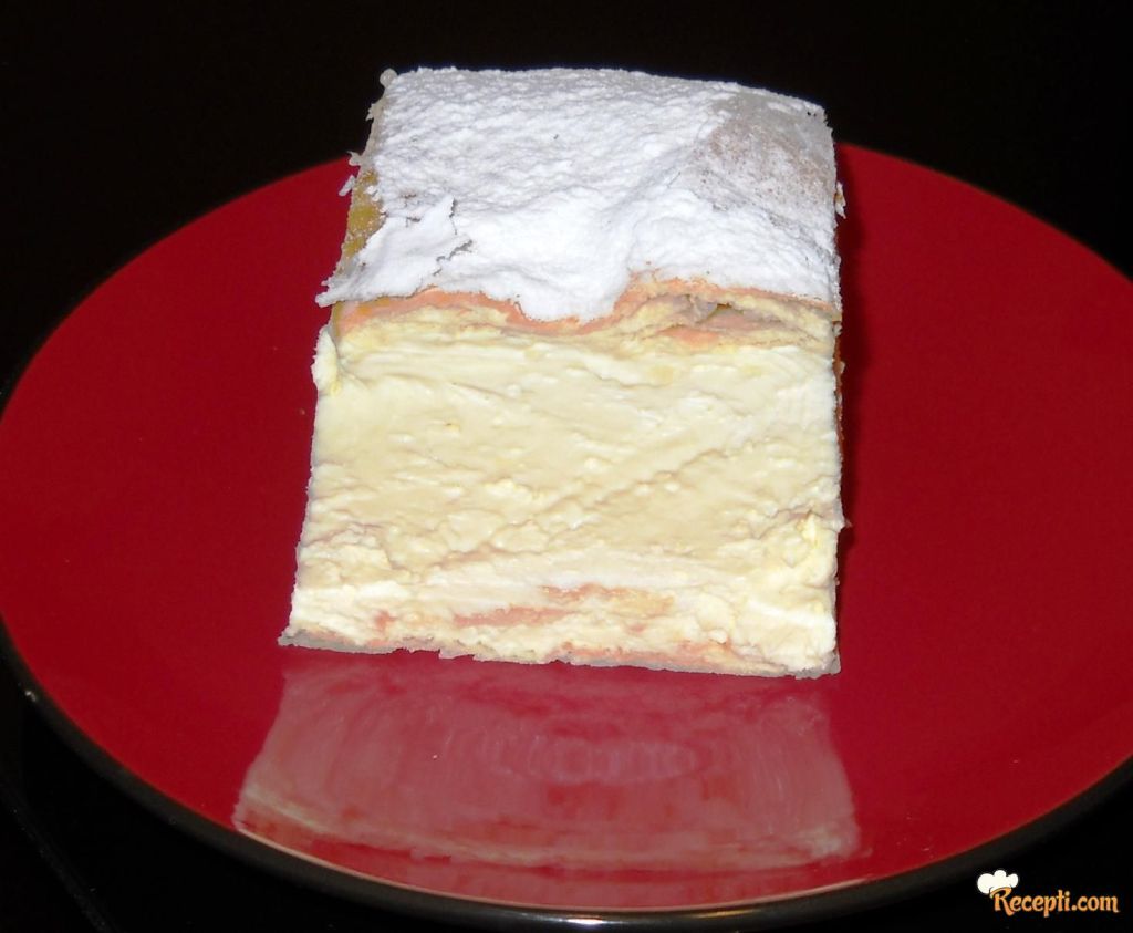 Threaded throughout the story is a travelogue of the Montenegro coastal region. I holidayed there one summer about 15 years ago when the area was still a part of Serbia and this story has really captured the beauty of the sea which is utterly perfect for swimming in, the magic of the small medieval towns along the coast, and the dramatic hills that rise almost vertically out of the sea and the Bay of Kotor. And also, this book has managed to explore some of the local cuisine, my favourite of which was krempita – a pastry and vanilla-custard treat that has me right now thinking that maybe it’s time for a return trip to Budva. And because I can’t really describe krempita, here’s a picture…
